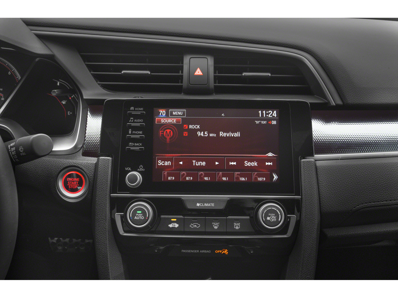 • Radio: 180-Watt AM/FM Audio System -inc: 8 speakers, 7-inch display w/high-resolution electrostatic touch-screen, knob and hard keys for primary controls and customizable feature settings, Bluetooth® HandsFreeLink, Bluetooth® streaming audio, radio data system (RDS), speed-sensitive volume compensation (SVC), 1.5-amp USB smartphone/audio interface in front, 1.0-amp USB audio interface port in center console, HondaLink, Apple CarPlay integration, Android Auto integration, SMS text message function and illuminated steering wheel-mounted controls