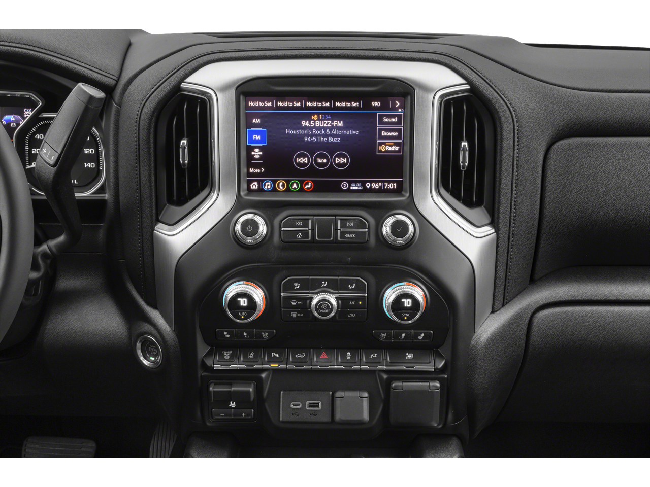 - Audio system, Premium GMC Infotainment System with 8" diagonal color touch-screen includes multi-touch display, AM/FM stereo, Bluetooth® streaming audio for music and most phones; featuring wireless Android Auto and Apple CarPlay capability for compatible phones, advanced voice recognition, in-vehicle apps, personalized profiles for infotainment and vehicle settings (Includes (PZ8) Hitch Guidance with hitch view.)