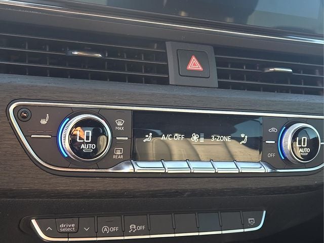 Stepping inside, you'll be greeted by a cabin that exudes sophistication and attention to detail. The Black leather seating surfaces, coupled with the Gray Oak Natural Wood Inlays, create a warm and inviting atmosphere. Heated front seats and a power-adjustable driver's seat ensure maximum comfort, while the Audi Sound System provides a immersive audio experience.