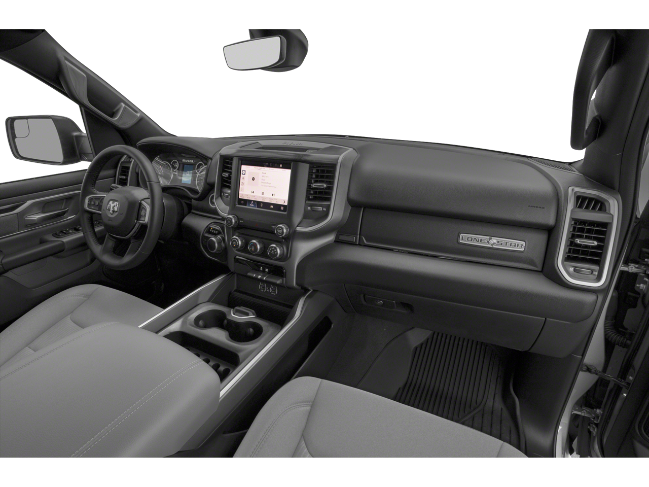 The spacious and well-appointed interior of this Big Horn/Lone Star model provides ample room for passengers and cargo, with features like heated front seats, a heated steering wheel, and a premium audio system to keep you comfortable and entertained on the road.