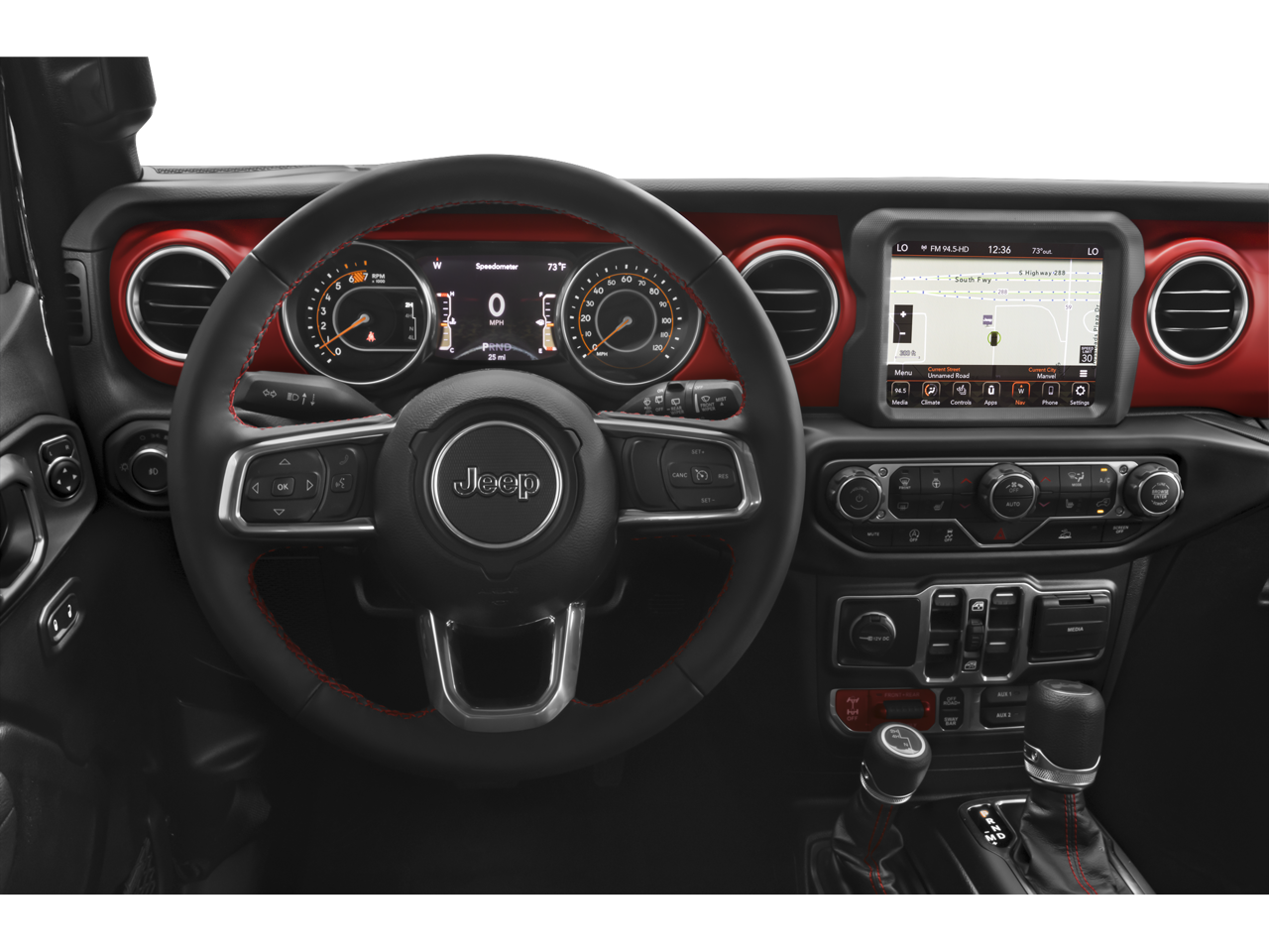 Inside, the Wrangler Rubicon offers a premium, well-equipped cabin with features like the Uconnect 4C Nav system with an 8.4-inch display, dual-zone automatic climate control, and a premium audio system with 9 speakers. The Black 3-Piece Hard Top provides year-round versatility, while the LED lighting group enhances visibility and style.