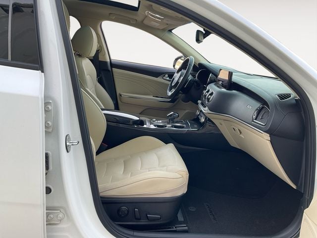 Odometer is 8678 miles below market average! "Leather", "Moonroof/Sunroof", "Navigation", "Bluetooth®", "Remote Keyless", "Power Seat", "USB Port", "Heated Seats", "Blind-spot Monitoring", "Lane Departure Warning", "Apple CarPlay and Android Audio", "Ventilated Seats", "Memory Driver's Seat", Stinger GT2, 3.3L V6 DGI, RWD, Snow White Pearl, Beige Leather.