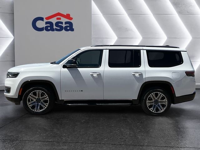 Experience the pinnacle of American luxury with the 2024 Jeep Wagoneer Series II. Reimagined for the modern era, this full-size SUV swaps the old V8 for a more powerful, more efficient heart, making it the premier choice for El Paso families who need massive interior space without sacrificing sophisticated performance. The 2024 Wagoneer features the groundbreaking 3.0L Hurricane Twin-Turbo I6 engine, delivering a massive 420 horsepower and 468 lb-ft of torque. Modern Efficiency: Paired with a smooth 8-speed automatic transmission, the RWD configuration offers an EPA-estimated 17 City / 24 Highway MPG surpassing the efficiency of previous V8 models while providing even more towing muscle. Superior Towing: Whether you're hauling a camper to Hueco Tanks or a boat to the lake, the Wagoneer boasts a maximum towing capacity of up to 10,000 lbs when properly equipped, leading its class in utility. The Series II trim is the "sweet spot" of the lineup, offering premium upgrades that turn every drive across the Sun City into a getaway. First-Class Seating: Luxurious Nappa Leather-trimmed seats come standard. Both the driver and front passenger enjoy heated and ventilated seats, a lifesaver during El Pasos triple-digit summers. Unrivaled Space: With best-in-class second- and third-row legroom, you can comfortably seat up to eight adults. The power-folding third row makes switching from passenger mode to cargo mode effortless. Connectivity Hub: A 10.1-inch Uconnect 5 touchscreen features wireless Apple CarPlay and Android Auto, supplemented by a wireless charging pad to keep your devices ready for the road. Jeeps suite of driver-assistance technology provides an extra layer of confidence on the busy I-10 or Transmountain Road: Adaptive Cruise Control with Stop & Go: Perfect for navigating stop-and-go traffic during the afternoon rush. Active Lane Management: Helps keep you centered during long desert stretches. Blind Spot Monitoring: Uses radar sensors to detect vehicles you might miss, providing a visual alert in your side mirrors. Pedestrian and Cyclist Emergency Braking: Adds a layer of protection for busy school zones and downtown areas. The 2024 Jeep Wagoneer Series II is more than just an SUV; it's a mobile sanctuary. It offers the rugged "Go Anywhere" spirit of a Jeep with a level of refinement that rivals European luxury brands. From its iconic silhouette to its whisper-quiet cabin, the Wagoneer is designed for those who want to lead the way in El Paso. Buying a used car doesn't have to be a cause for worry. Casa fully inspects all the vehicles that make it to our lot, so we stand behind them. Your pre-owned vehicle is covered the moment you drive off the Casa lot. We understand that your vehicle is a significant investment, and we want to make sure that you get the most out of it. That's why we offer the Casa Lifetime Powertrain Protection to protect all the essential components of your vehicle's powertrain. CARFAX One-Owner. Clean CARFAX. Bright White Clearcoat 2024 Jeep Wagoneer Series II